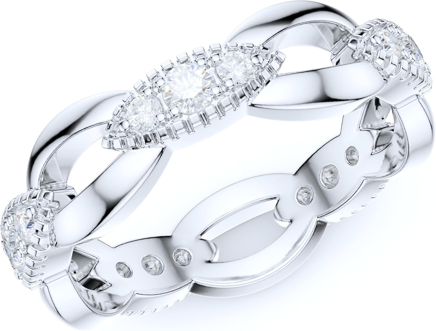 THELANDA Sterling Silver 5.5mm Vintage Infinity Interlocking Simulated Round Diamond or Genuine Moissanite Eternity Band Wedding Ring