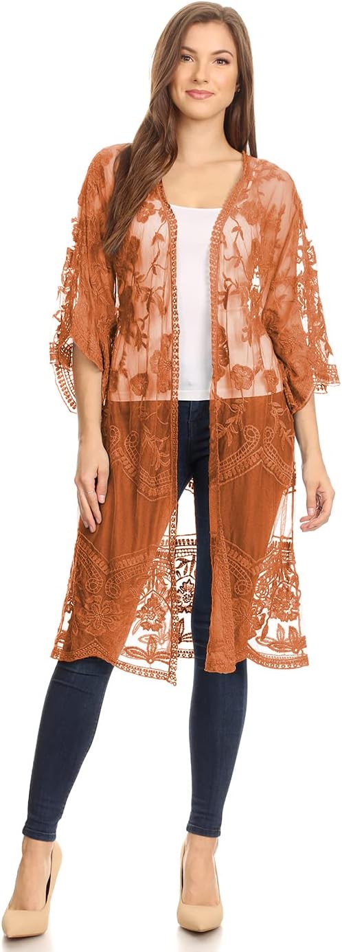 Anna-Kaci Floral Crochet Lace Cardigan for Women Beach Cover Ups Dress Kimono
