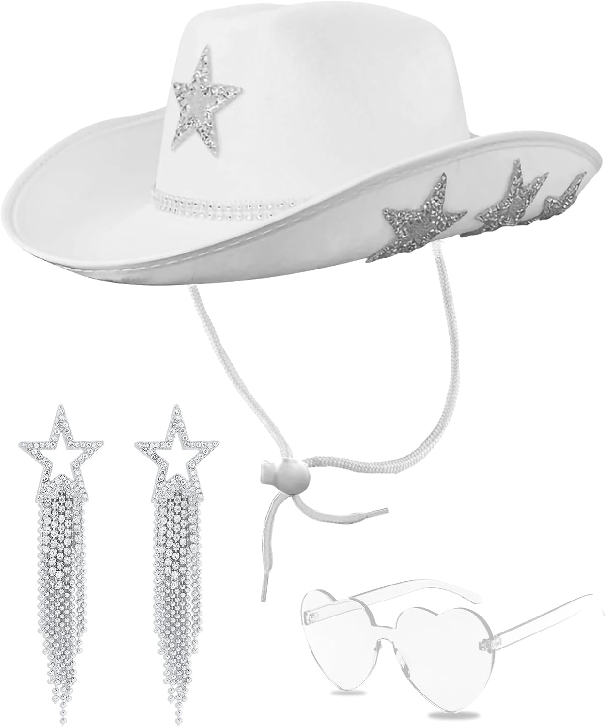 White Cowgirl Hat with Heart Sunglasses - Cowboy Hat with Glitter Star Fits Women for Bachelorette Themed Party