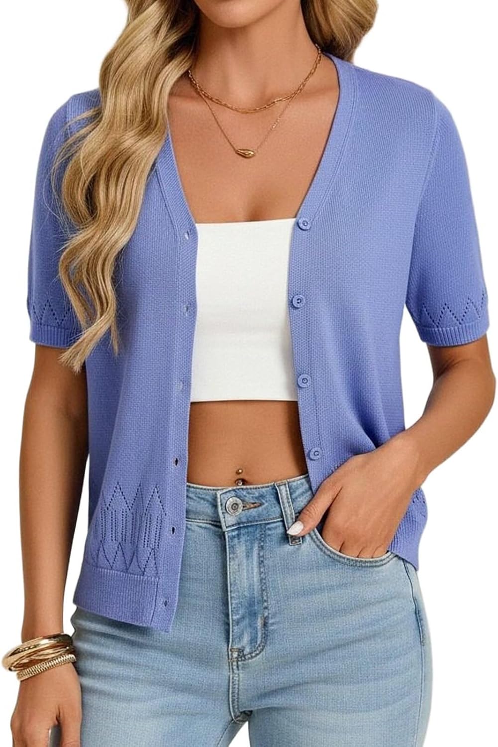 GRACE KARIN Women's Short Sleeve Spring Sweater, Lightweight Cotton Cardigan, Button Up V Neck Dressy Casual Cute Tops