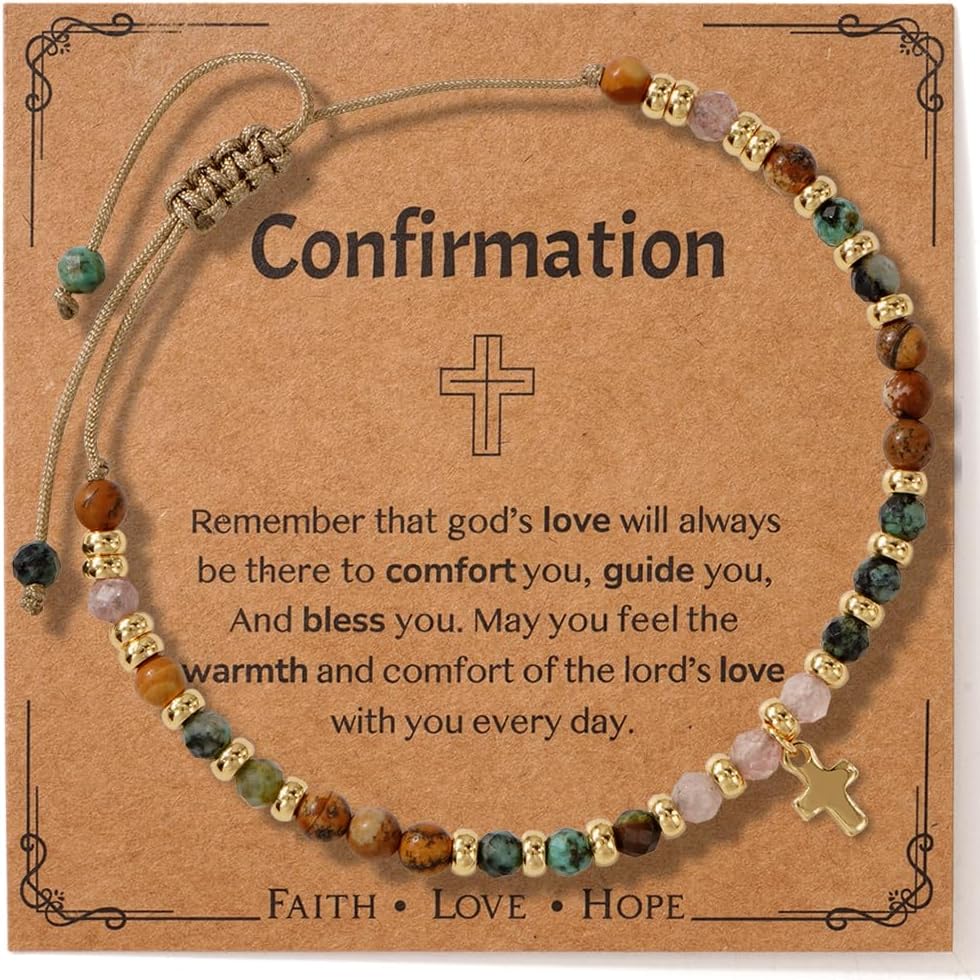 Cross Bracelet for Women Christmas Stocking Stuffers Inspirational Christian Gifts for Women Sister Friend Baptism Easter Graduation Faith Catholic Religious Natural Stone Beaded Bracelet