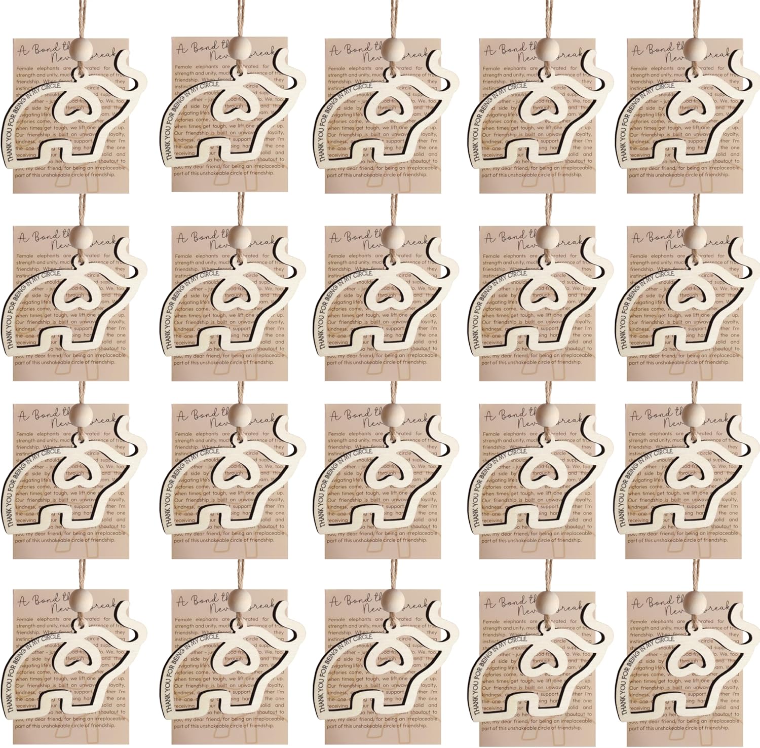Friendship Elephant Ornament with Gift Card, Best Friend Birthday Gifts for Women, Decorative Hanging Ornament (Natural-20Pcs)