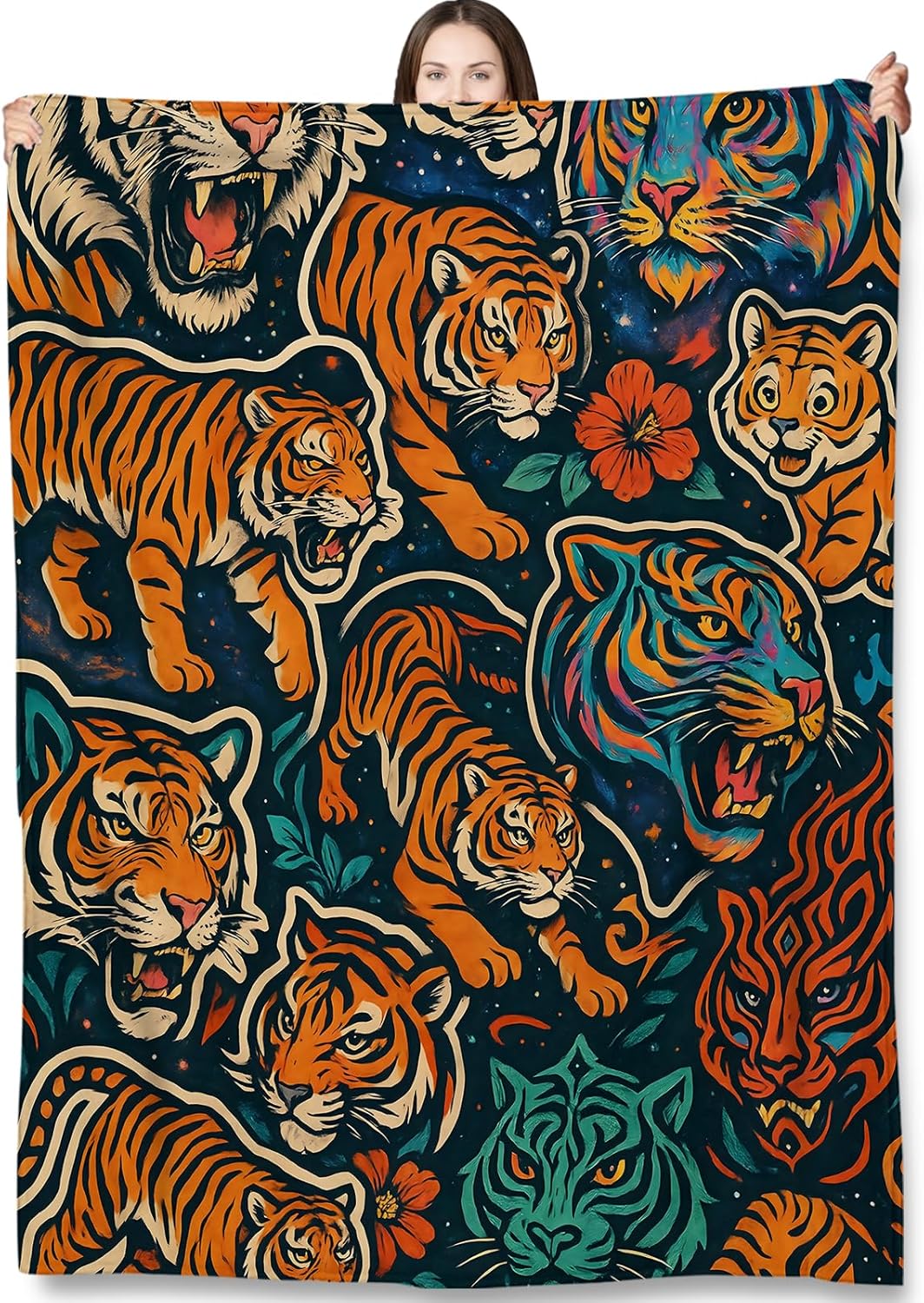 Tiger Throw Blanket Gifts for Adults Kids, Tiger Pattern Blankets for Living Room Bedroom Decor, Fuzzy Warm Flannel Plush 50"x60"