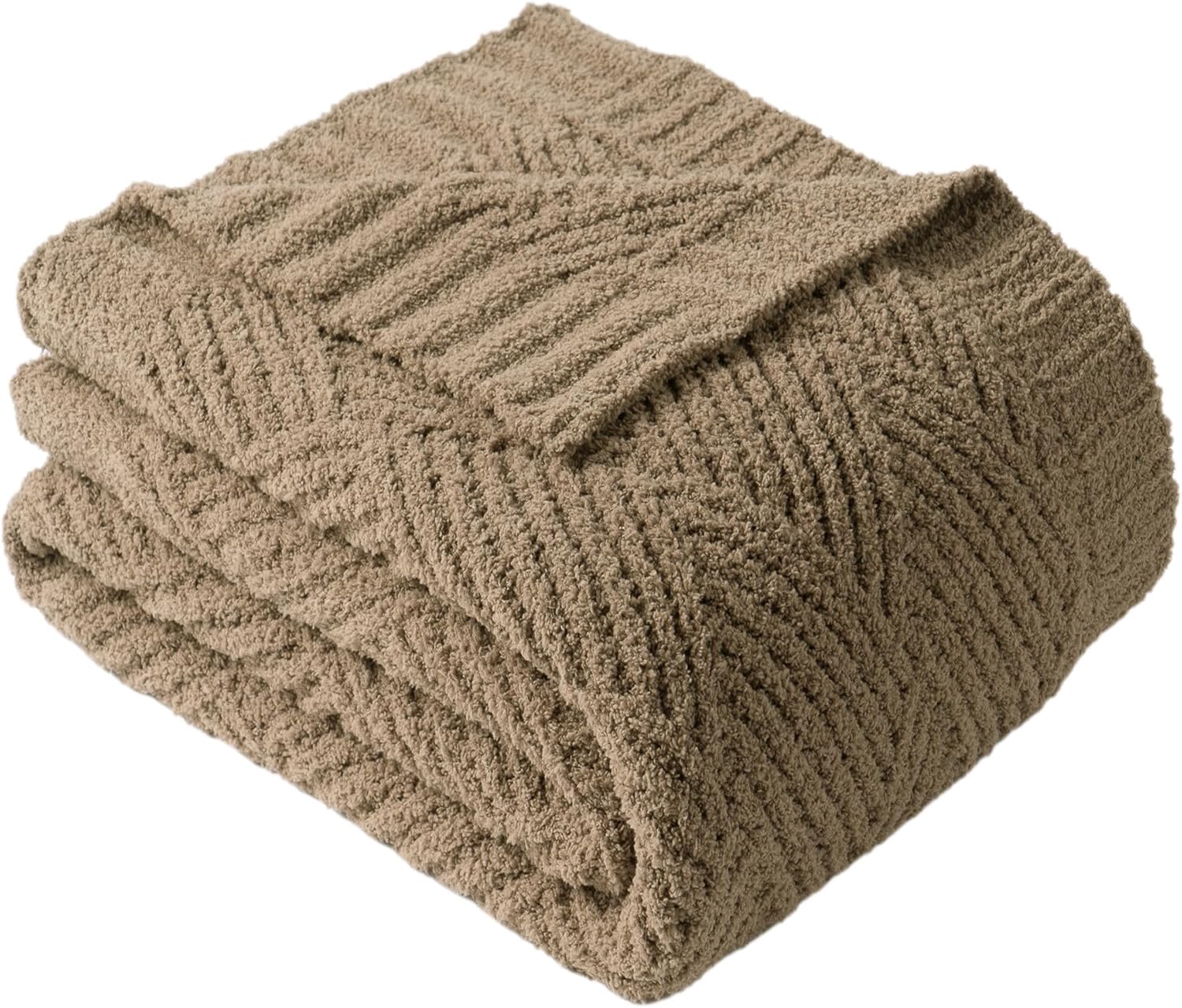Battilo Khaki Diamond Knit Throw Blanket for Couch and Bed, Soft Textured Chenille Blanket, Cozy Lightweight Decorative Blanket for Sofa, 50"x60"