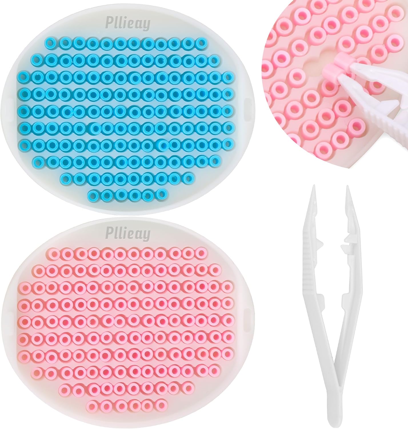 Pllieay 5mm Fuse Bead Organizer Tray, 2 Pcs High Efficient Fuse Beads Picking Tray with Total 272 Holes, Time Saver 3D Printed Bead Sorting Tray with Tweezers for Melty Beads Crafting, Arts Crafts