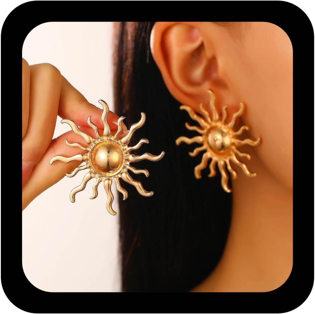 Boho Large Sun Earrings Metal Rising Suns Earring Big Sun Statement Earrings Exaggerated Sunburst Earring for Women(Gold)