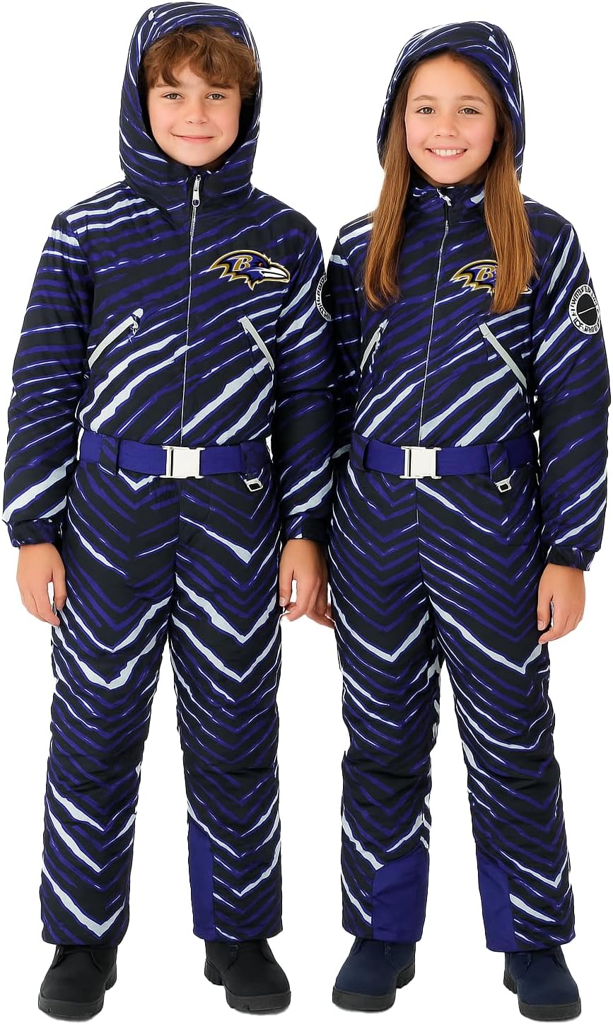 Zubaz NFL Boys and Girls Kids Youth Unisex Zebra Team Color Tundra Tux Snowsuit Jr (Small - X-Large)