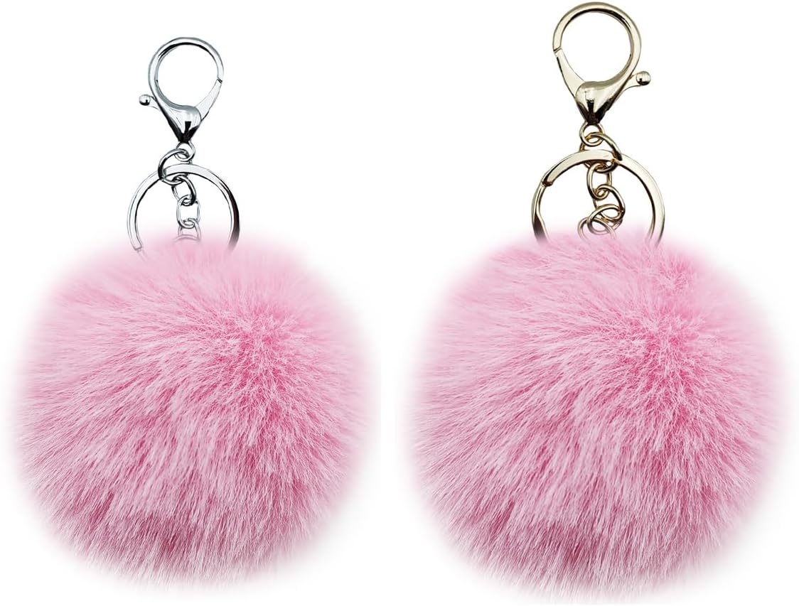 2PCS Pom Pom Keychain Faux Rabbit Fur Ball for Car Key Ring Handbag Bag Pendant