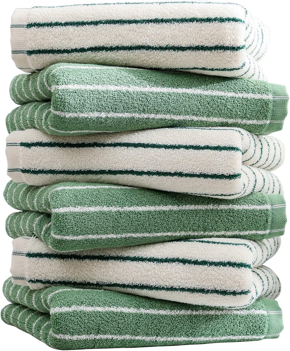 Green Stripe Towels Set of 6,Ultra-Absorbent & Quick-Drying Bathroom Hand Towels 100% Cotton Face Towels, Soft Hand Towels for Bathroom,13” x 29”