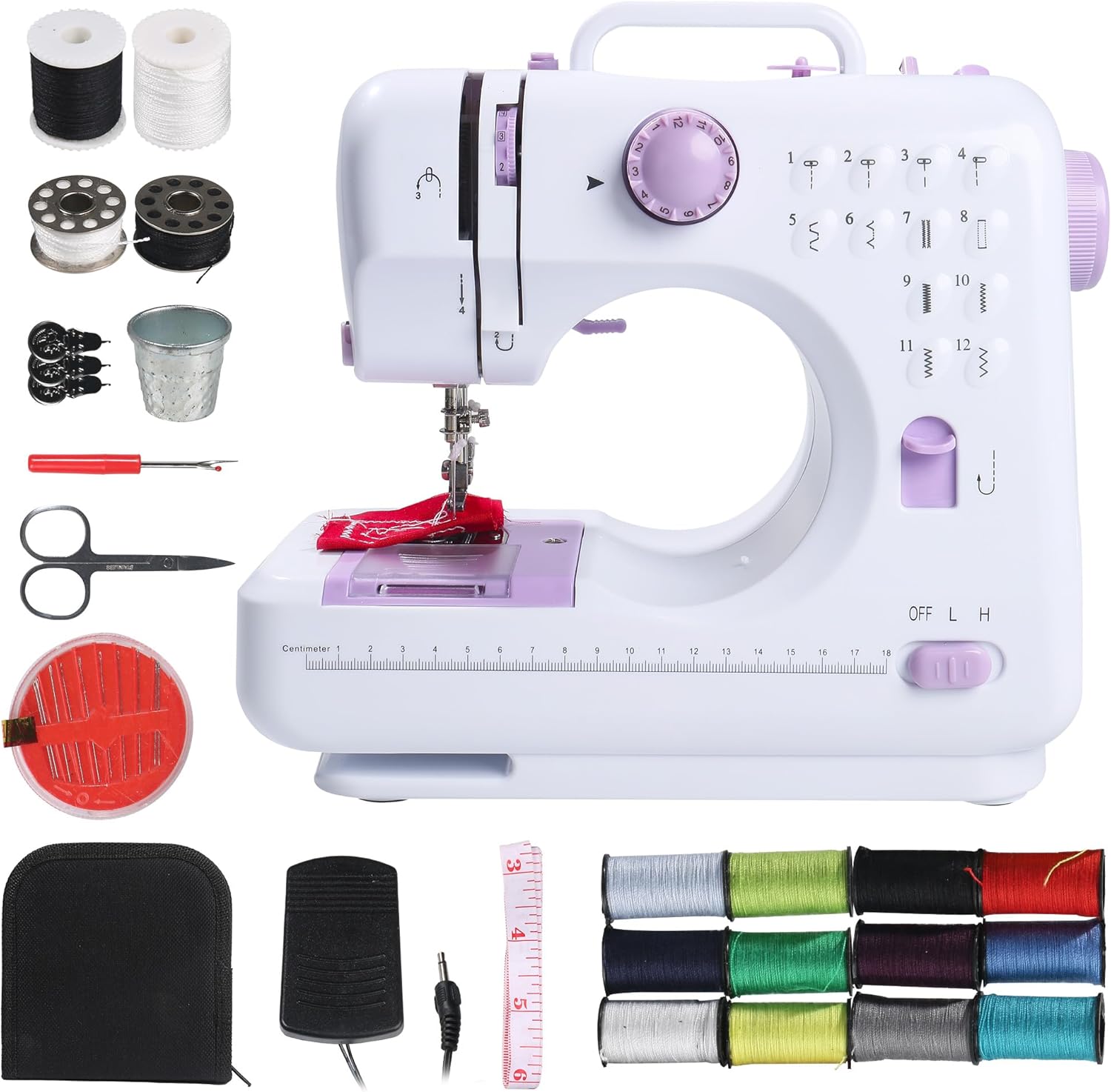 - Versatile stitches and reverse stitching: Our household sewing machine offers 12 different stitches, including adjustable stitch lengths, pattern stitches, lock stitches, and curve stitches. Simply adjust the knob to the corresponding number to use the desired stitch. Additionally, it has a reverse sewing function that requires you to keep pressing the reverse sewing switch.