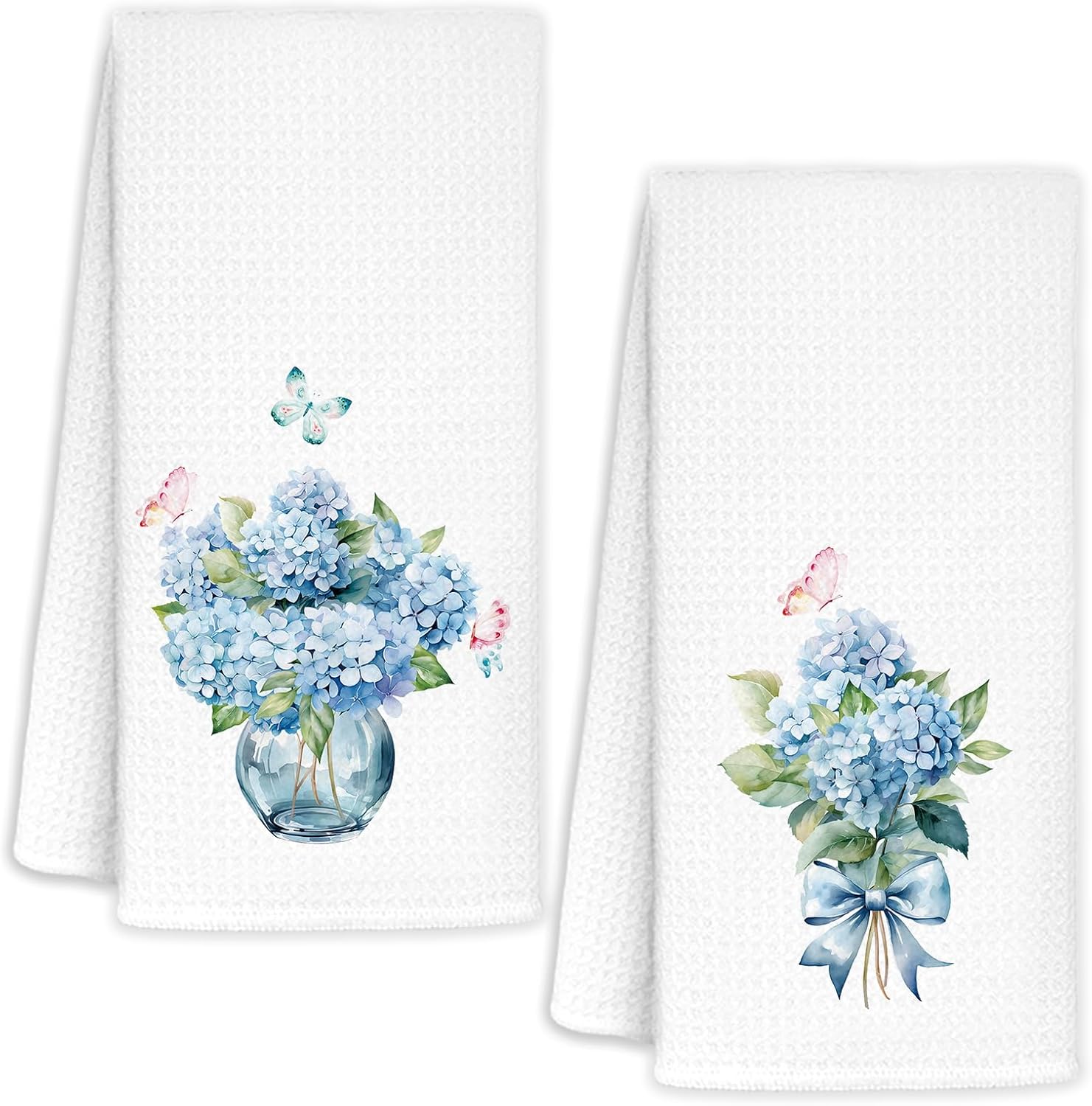 Blue Hydrangea Floral Bathroom Hand Towels Set of 2, Girly Bow Cottagecore Hand Towels for Bath Room Washroom Powder Room, Hydrangea Flower Botanical Kitchen Dish Towel, 16x24 Inch
