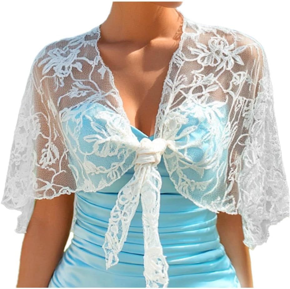 JAKAWIN Wedding Shawl and Wrap White Flower Lace Cape Formal Dressy Bridal Bolero Capelet for Women
