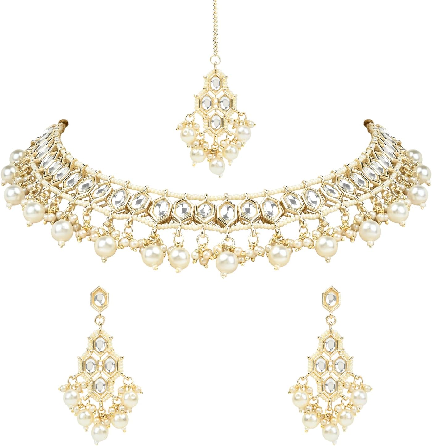 I Jewels Gold Plated Kundan Necklace Jewellery With Earrings & Maang Tikka Set for Women