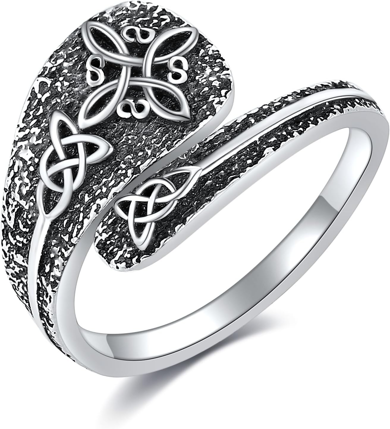 Spoon Rings 925 Sterling Silver Adjustable Hummingbird/Shark/Daisy/Tree Of Life/Dragonfly/Witches Knot/Sea Turtle Ring Thumb Rings Birthday Jewelry Gifts for Women Mother