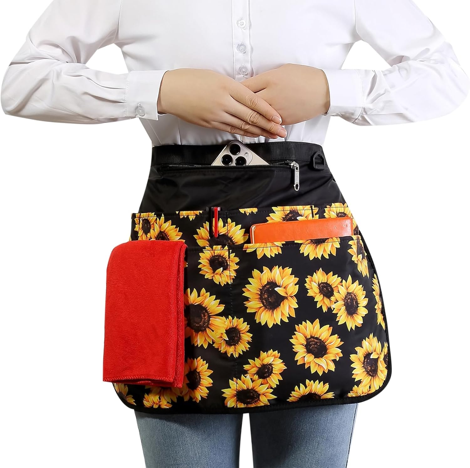 Waterproof Server Apron for Women with 7 Pockets,Quickly Put on and Take off Waitress Apron,Work Apron for Bartender Barista