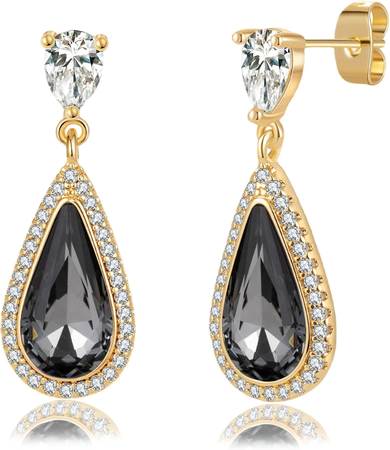 EVEVIC Austrian Crystal Halo Teardrop Dangle Drop Earrings for Women 14K Gold Plated Jewelry Gifts