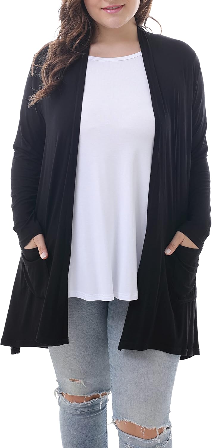ZERDOCEAN Women's Plus Size Long Sleeve Lightweight Soft Printed Drape Cardigan with Pockets