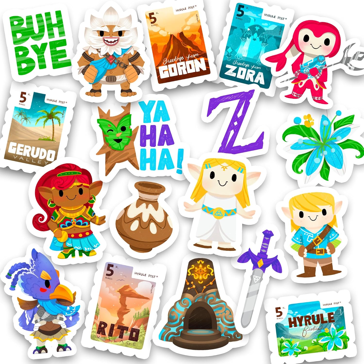 Die Cut Stickers 19 pcs, Vinyl Waterproof Stickers for The Legend of Zelda Breath of The Wild, Tears of The Kingdom, Twilight Princess and Ocarina of Time