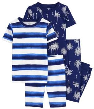 Carter's 4-Piece Toddler and baby Boy's Snug fit Cotton Pajamas (Blue/White Palm, 5T)