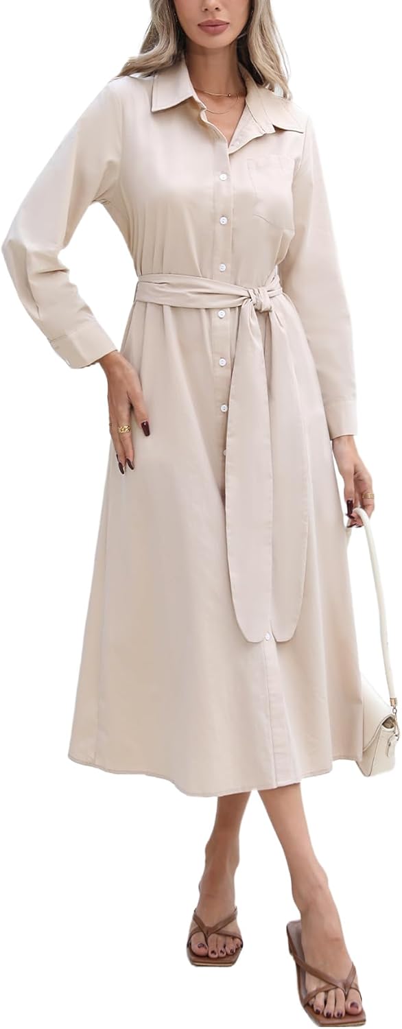 Kedera Women's Casual Long Sleeve Dress Button Down Striped Maxi Shirt Dress Side Split Loose Fit Blouse Dress