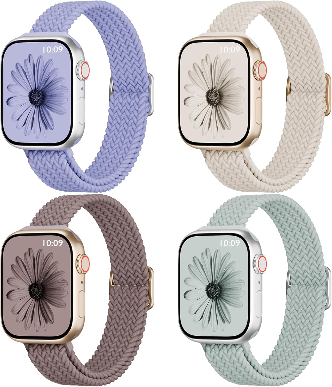 4 Pack Slim Braided Stretchy Compatible with Apple Watch Band 38mm 42mm 40mm 44mm 41mm 45mm 46mm 49mm Women Men, Solo Loop Nylon Thin Strap for iWatch Series 11 10 9 8 7 SE 6 5 4 3 Ultra