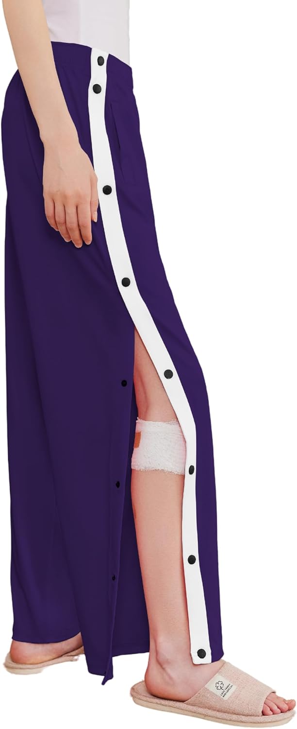 Deyeek Women's Tear Away Pants Side Split Snap Open Bottom Sweatpants Leg Breakaway Post Surgery Pants with Pockets