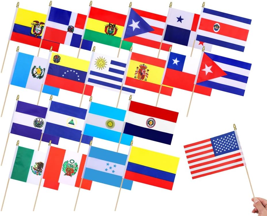 - Vibrant Design: Our 5 x 8 inch Latin America flags on a 12 inch stick are crafted from 100% polyester, ensuring durability and a vibrant display; With advanced dyeing technology, these small 21 Countries flags on stick won’t fade easily