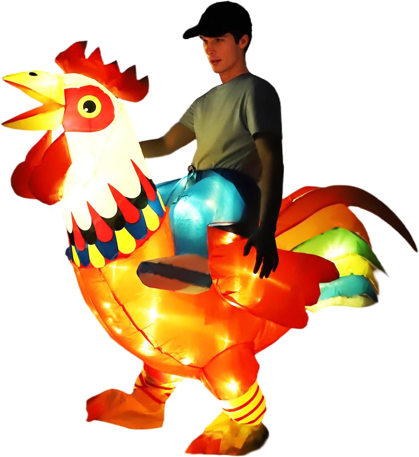 Inflatable Chicken Costume Adult with Lights, Funny Halloween Costume Ride on Rooster Costume for Party Christmas