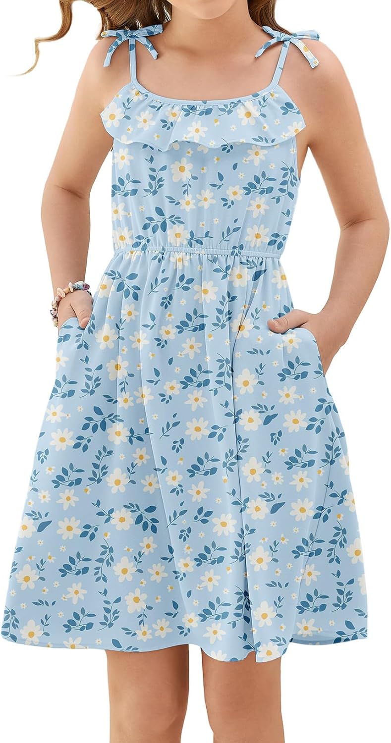 blibean Girls Summer Sundress Floral Print Strap Sleeveless Dress Size 6-15 Years