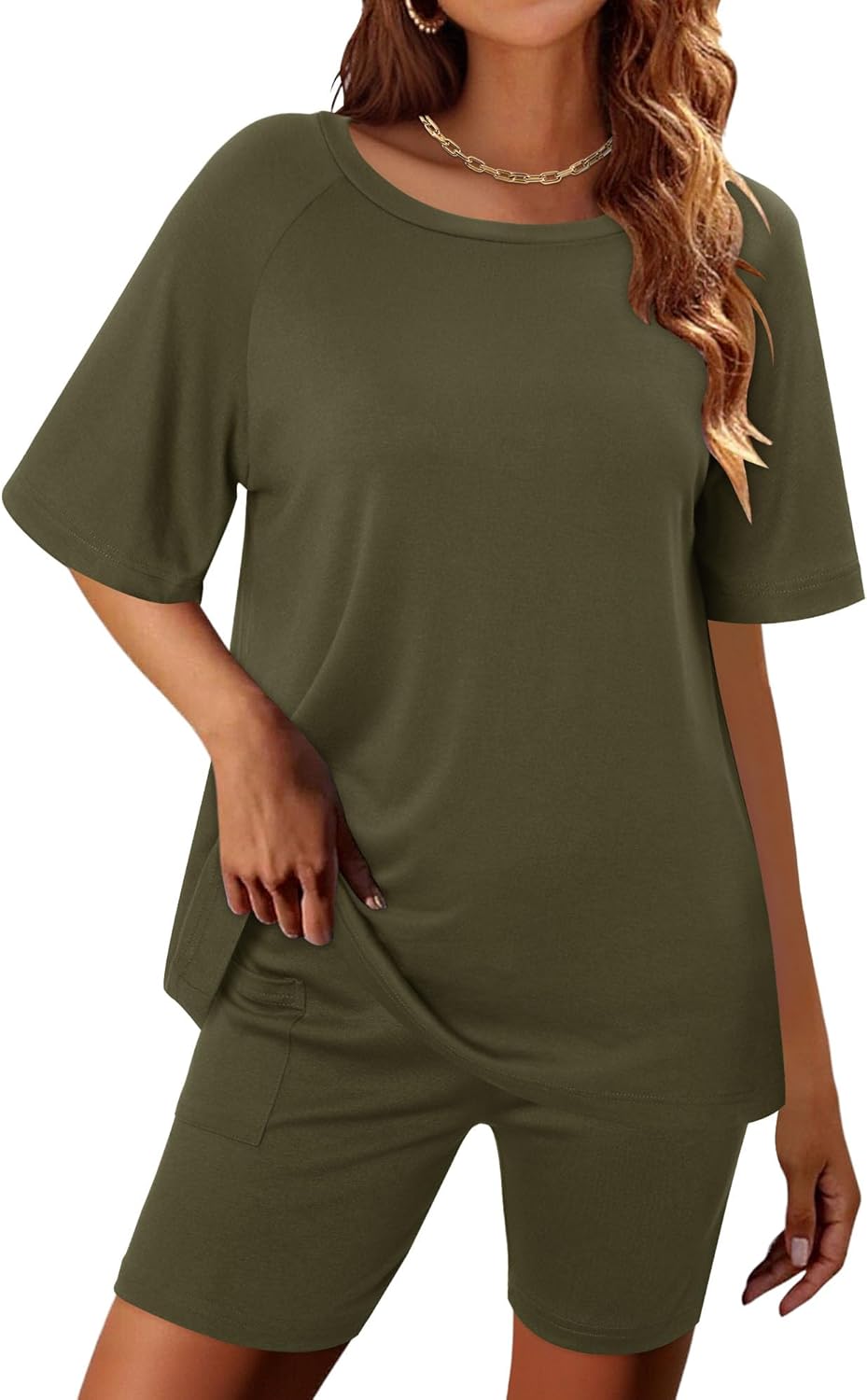 Magritta Women Two Piece Lounge Set Summer Casual Loose Fit Shirts Elastic Waist Biker Shorts Matching Airport Travel Outfit