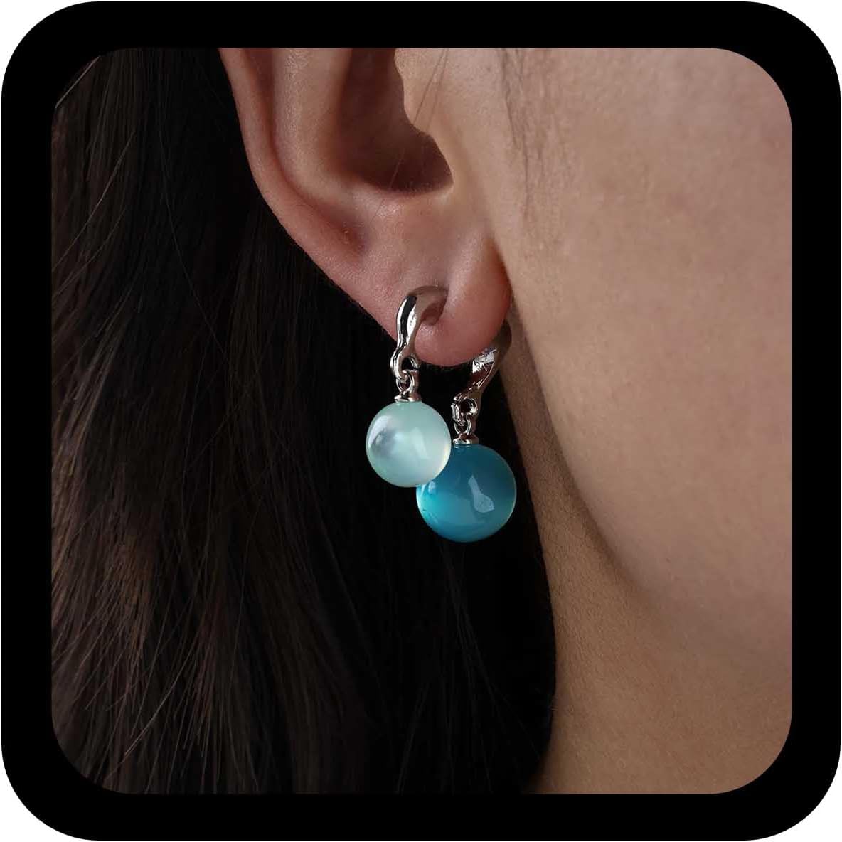 Boho Glass Bead Dangle Earrings Ball Ear Jacket Earrings Glass Ball Drop Earring Beads Double Sided Earring Blue Gemstone Dangle Front Back Jewelry for Women