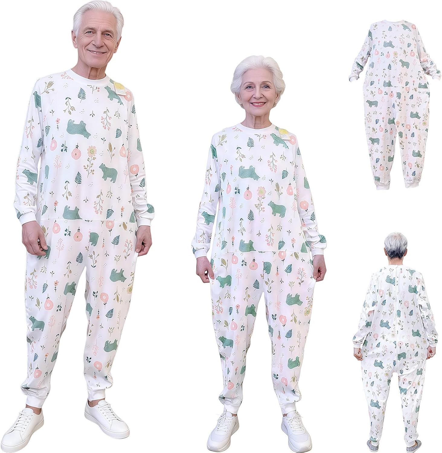 Unisex Jumpsuit with Back-Zipper,Suitable for Incontinence Care,Alzheimer’s Patients,Seniors,Dementia Patient