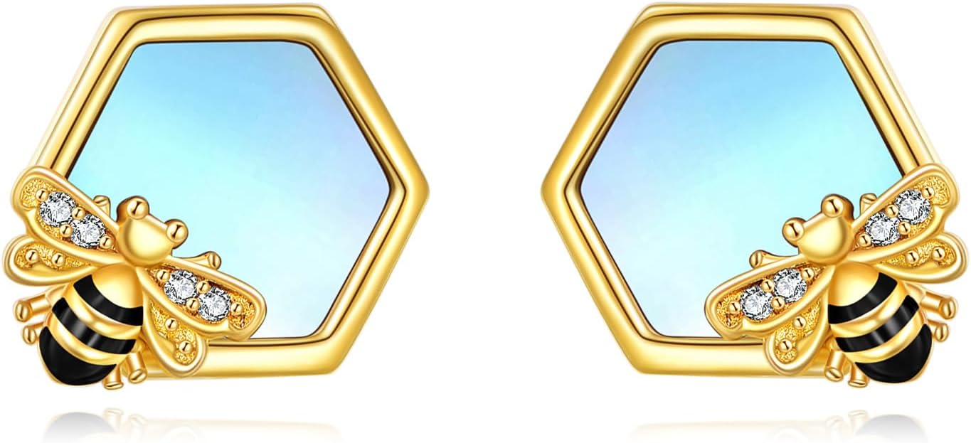 Bee Earrings for Women Sterling Silver Bee Stud Earrings Bumblebee Jewelry Honeycomb Earrings Gifts for Women