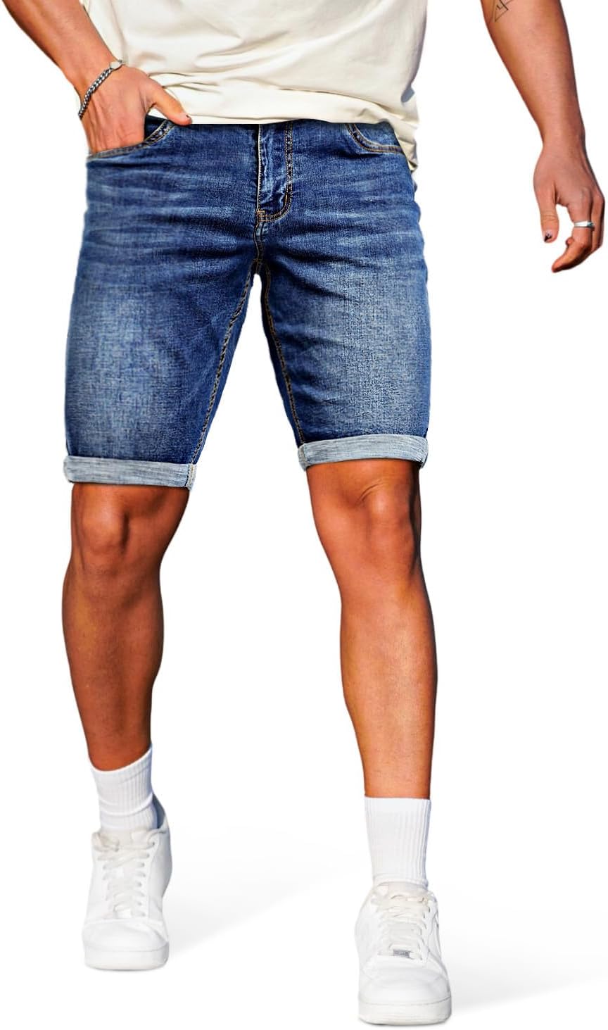 GINGTTO Denim Shorts Men Stretch Skinny Jean Shorts for Men