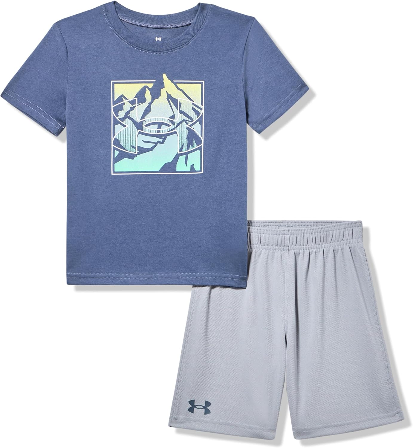 Under Armour Boys' 2-Piece Short Sleeve T-Shirt and Shorts Set, Outdoor Collection, Gray Summit SQ, 4T