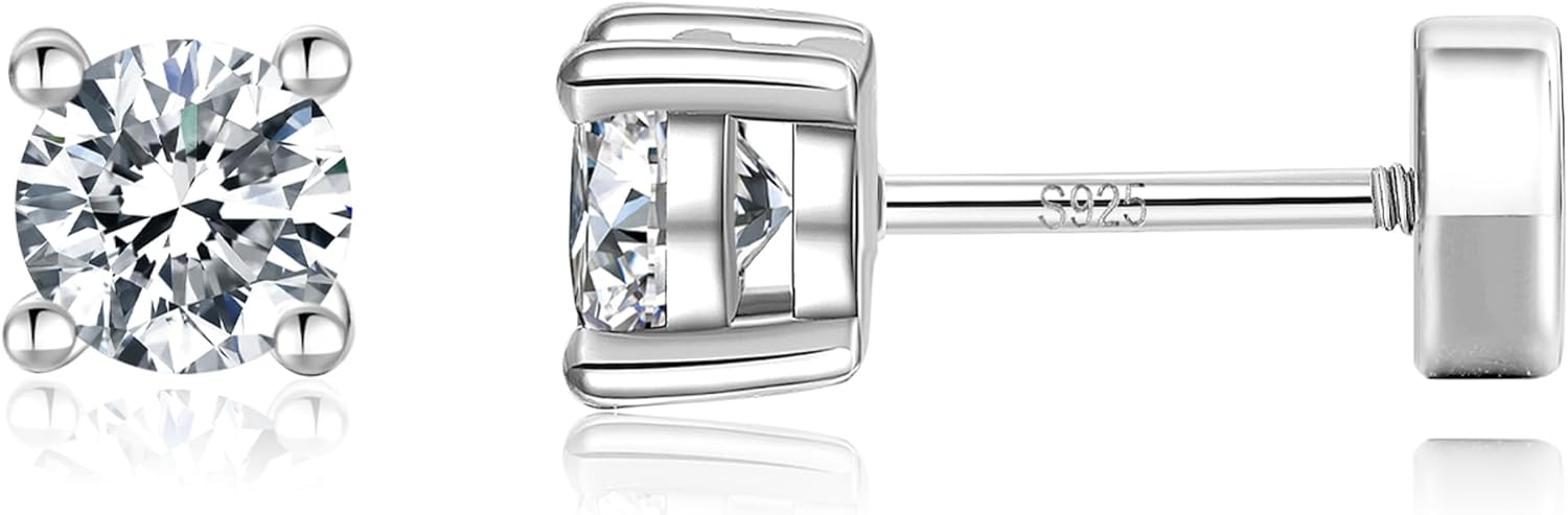 14K Gold Plated 925 Sterling Silver Moissanite Stud Flat Back Earrings for Women 0.06ct-2ct DF Color Brilliant Round Cut Jewelry Gifts