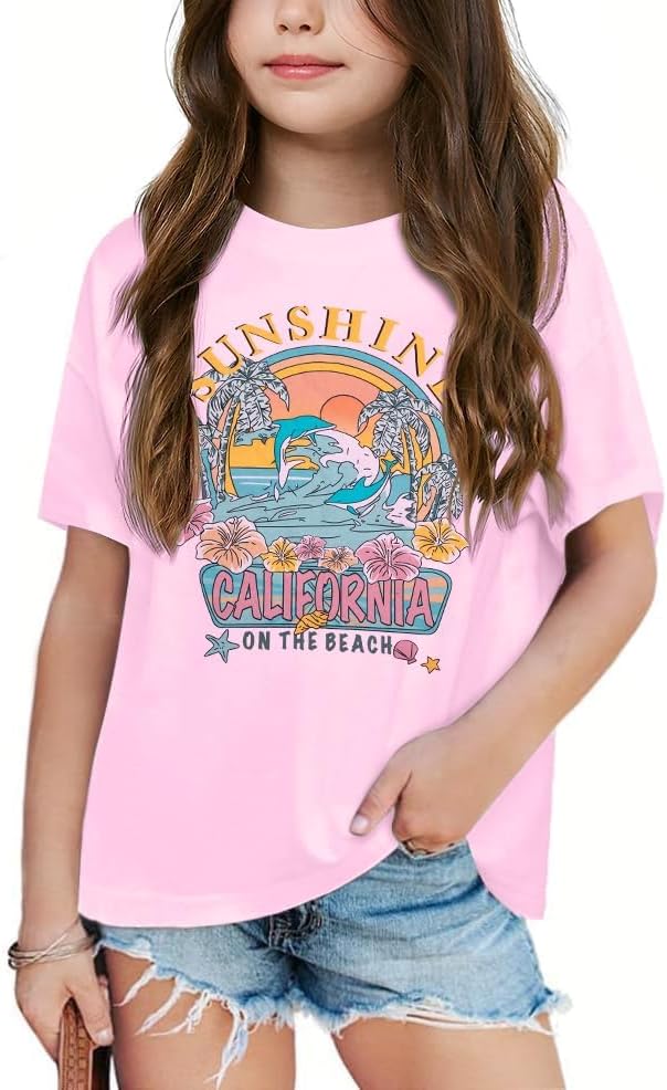 Girls Graphic Shirts Oversized Sunshine T Shirt Short Sleeve Tee Tops Cute Trendy Girls Clothes for 5-14 Years