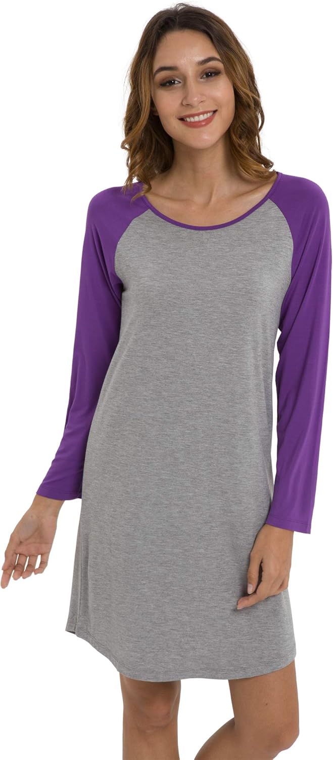 LazyCozy Womens Long Sleeve Nightgowns Viscose from Bamboo Sleepwear Soft Nightshirt Lightweight Sleep Dress