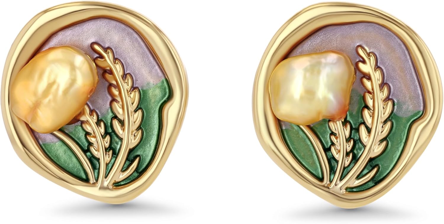 18K Gold Plated Mother of Pearl Flower Stud Statement Earrings for Women by SNGIA, Dainty Bold Retro Handmade Trendy Natural Sea Abalone Shell Floral Bohemian Jewelry Gifts, Small Unique Baroque Turquoise Stone Summer Beach Fashion Earrings Accessories, Vintage Gemstone Nickle Free Huggies Earrings.