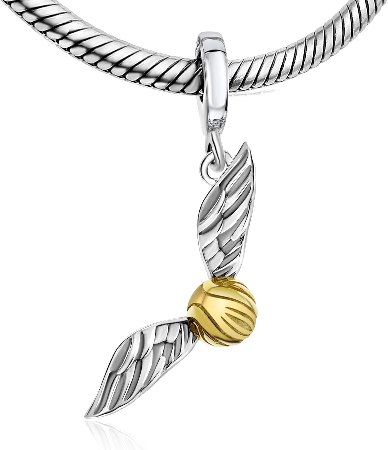Bolenvi Golden Ball Wings 925 erling Silver Pendant Charm Bead For Pandora & Similar Charm Bracelets or Necklaces