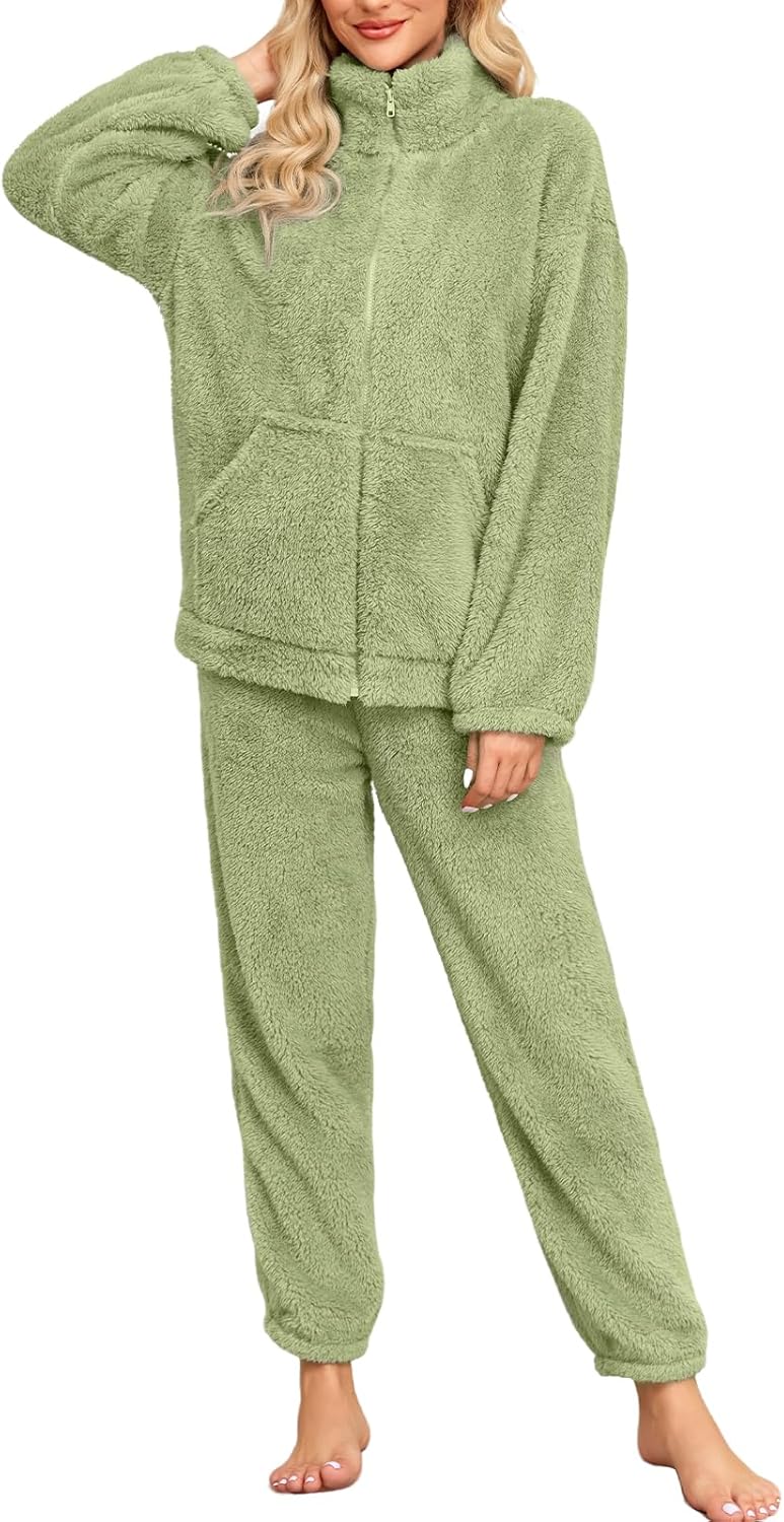 Women's Flannel Pajama Set Winter Warm Long Sleeve with Pockets and Pants Soft Cozy Loungewear
