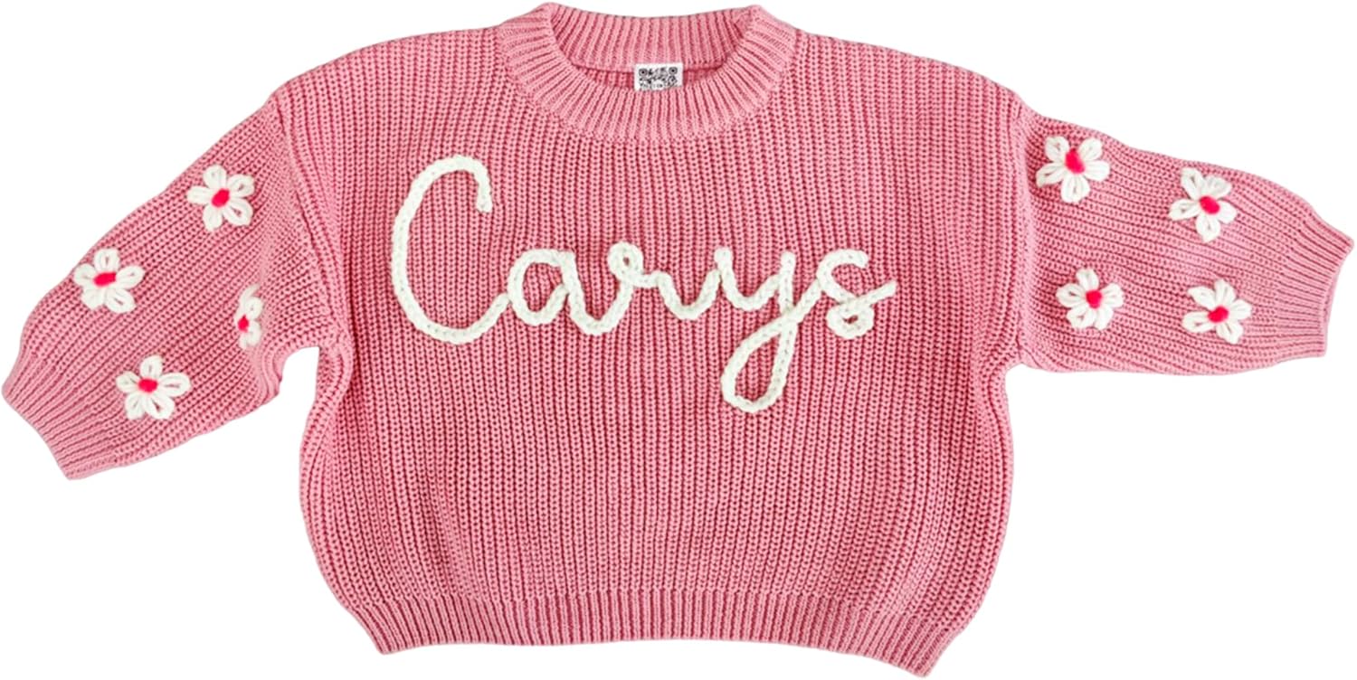 DILYPOD Personalized Baby Sweater, Custom Baby Name Sweater with Hand Embroidery & Monogram for Newborn 0–24 Months & Toddler 2T–5T, Infant Pullover, Babies Gift for Boy & Girl Christmas Babyshower