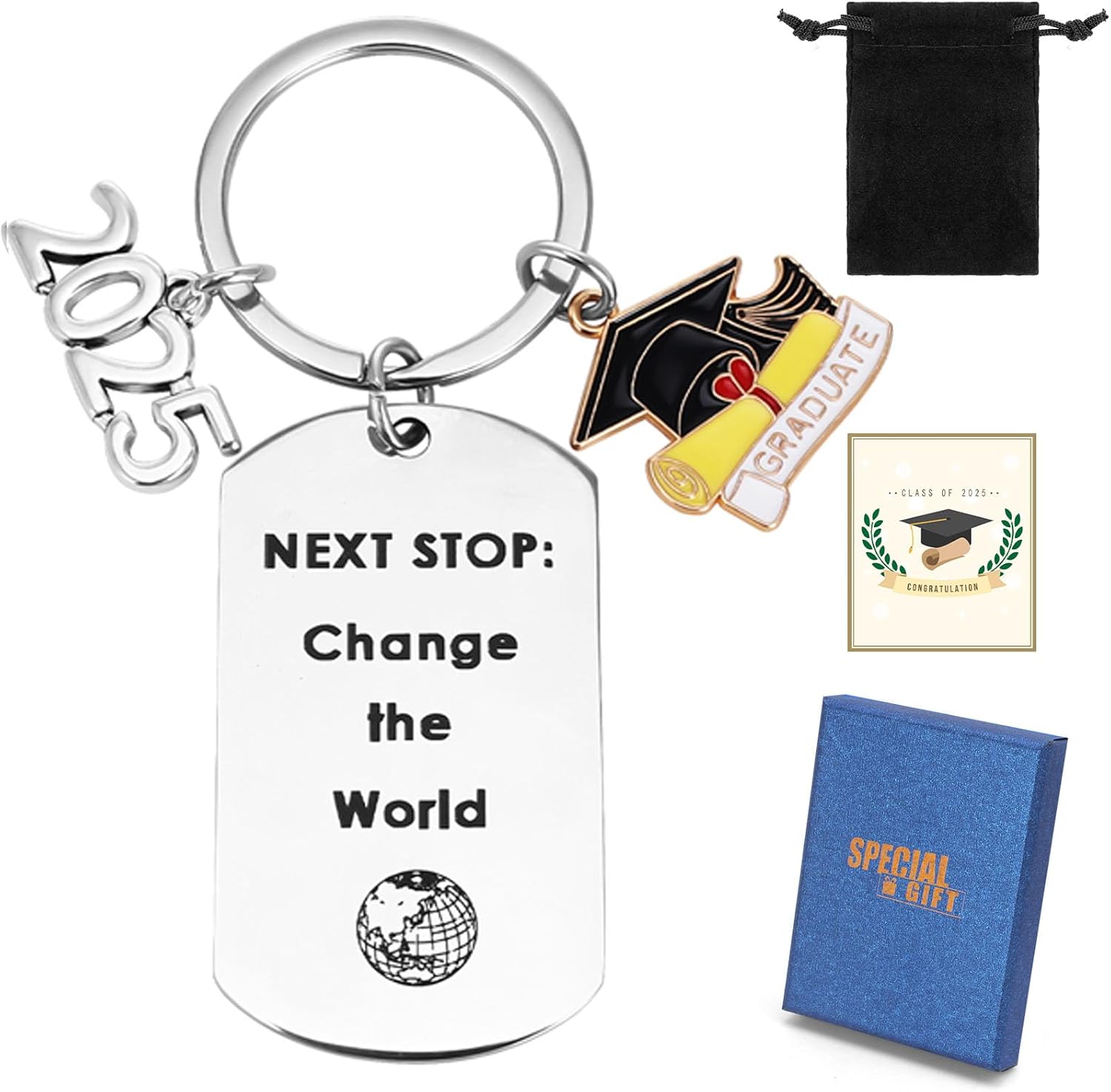 2025 Graduation Gifts Keychain Class of 2025 Graduation Keychain,Inspirational Gifts for Senior Masters Degree Student Gift Ideas,Velvet Pouch& Greeting Card &Premium Gift Box