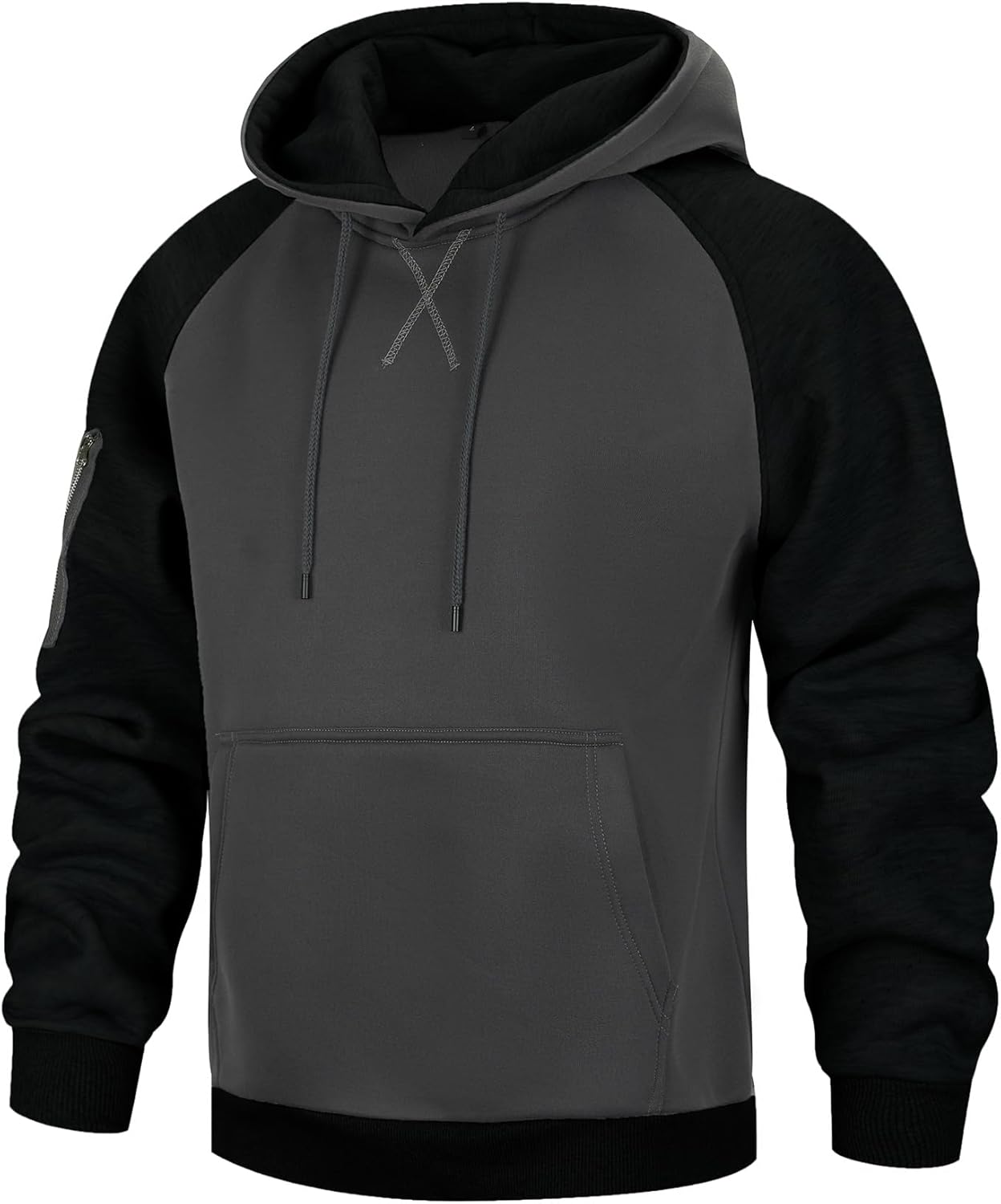 Mens Hoodies Pullover Color Block Long Sleeve Fleece Hooded Sweatshirt