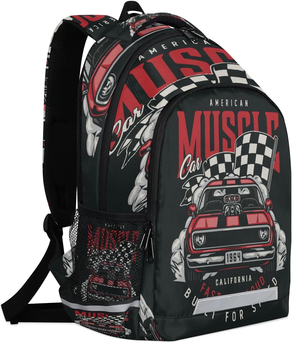 Racing Car Retro Backpack for Boys Girls Kids Schoolbag Children School Bookbag,Women Men Casual Daypack Students College Bookbags Travel Bags