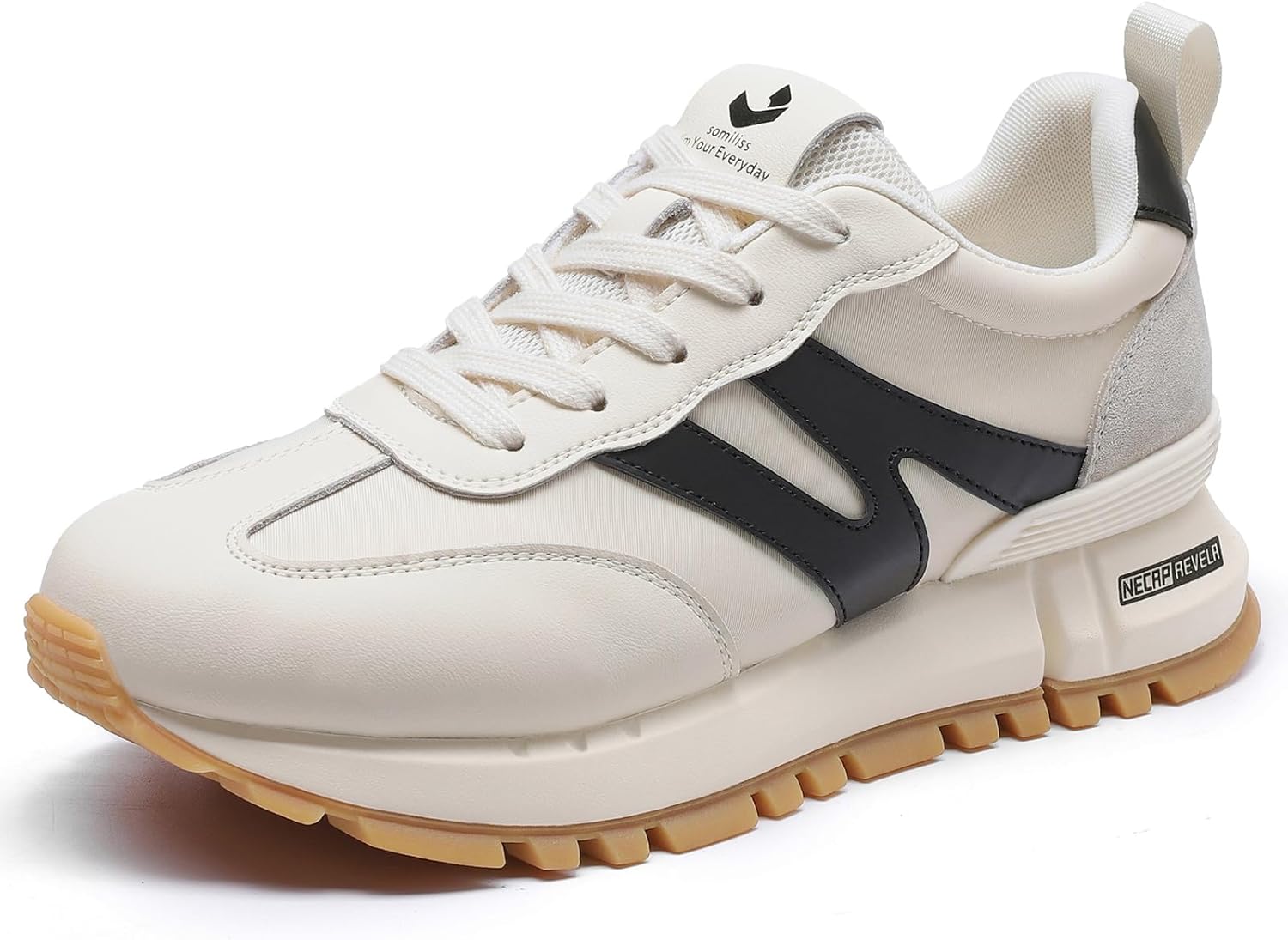 somiliss Sneakers for Women Genuine Leather Suede Patchwork Casual Lace Up Non-Slip Walking Shoes Comfortable Tennis Running Shoes Womens Fashion Sneakers