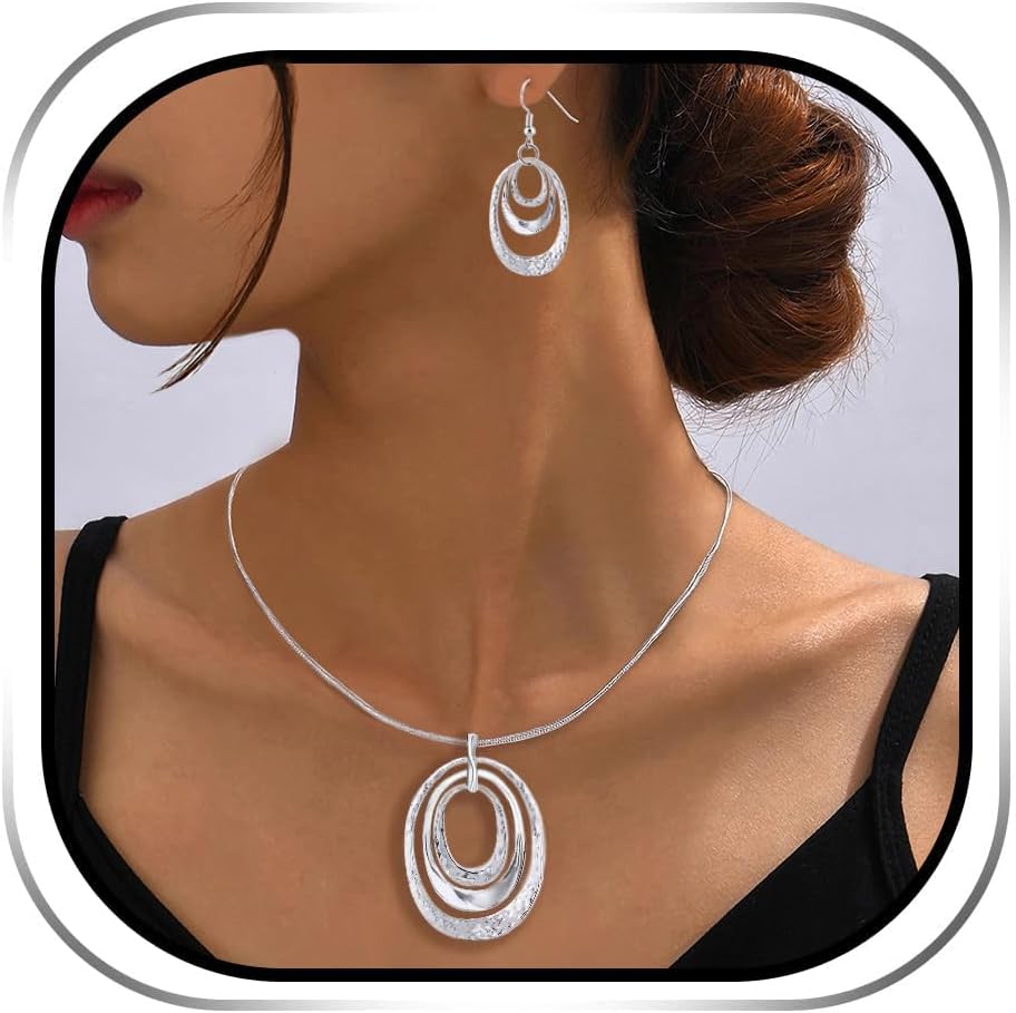 3 Circles Silver Hoop Earrings and Necklace Set for Women - 925 Plated Hypoallergenic Small Hoops