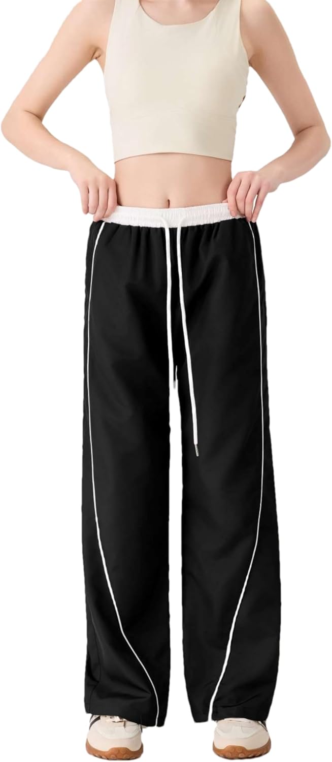 Womens Parachute Pants Y2K Baggy Wide Leg Pants Cargo Sweatpants Drawstring Waist Hiking Jogger Pants Trousers