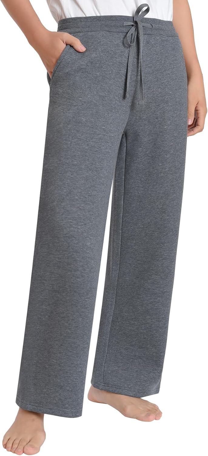 Weintee Women's Petite Wide Leg Fleece Sweatpants with Pockets