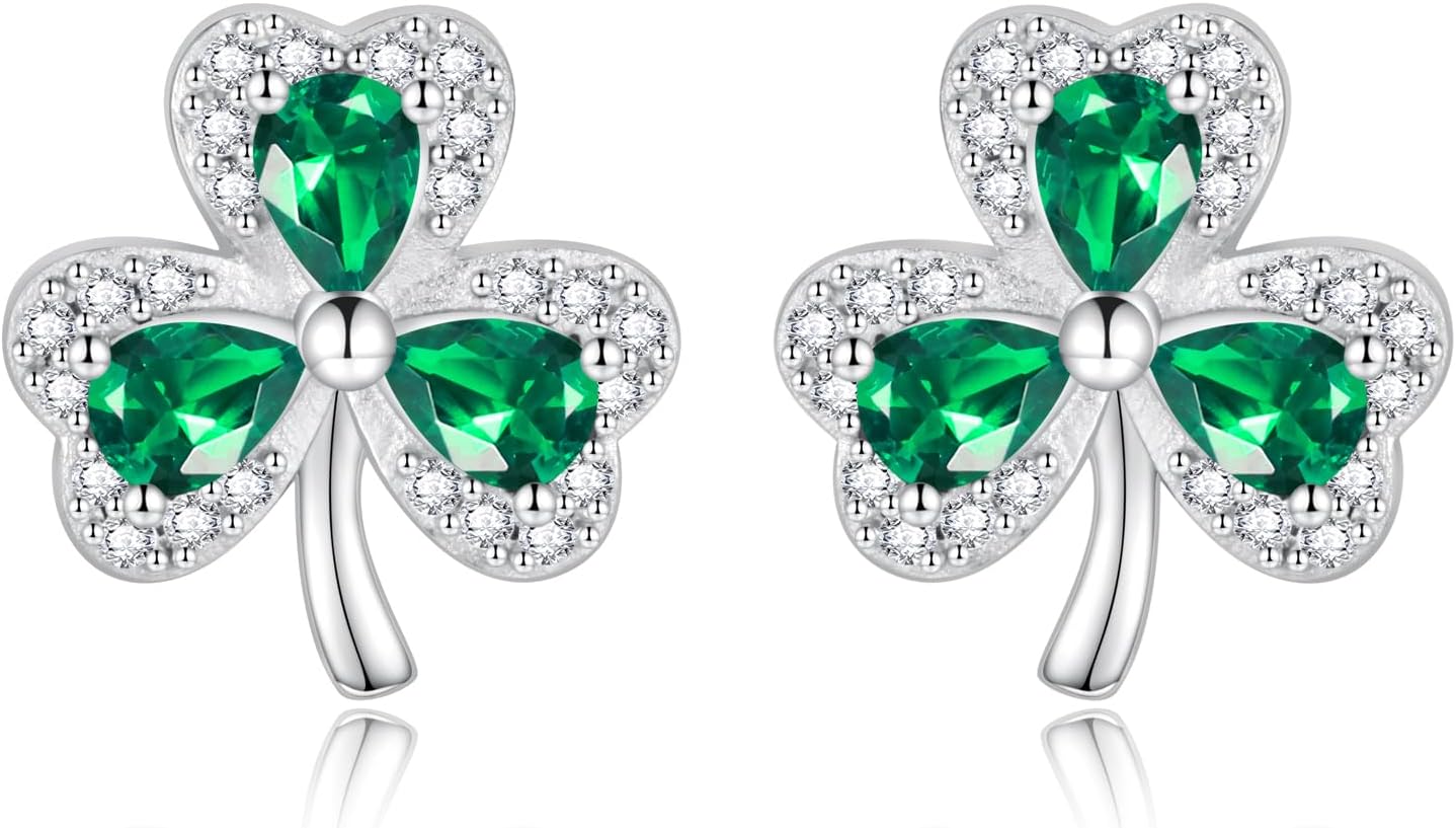 925 Sterling Silver Clover Stud Earrings Shamrock Irish Ear Studs St Patricks Day Jewelry Gifts for Women